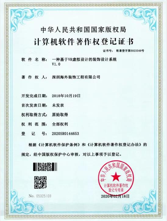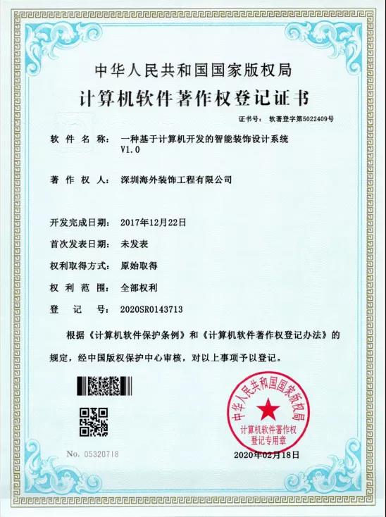 海外裝飾:榮獲五項計算機軟件著作權