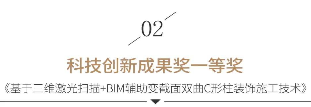 本次公布的名單中,寶鷹集團的《廣西金融廣場酒店二次裝飾設計》獲設計創新獎一等獎,《基于三維激光掃描+BIM輔助變截面雙曲C形柱裝飾施工技術》獲科技創新成果獎一等獎,《大空間采光頂桁架結構鋁板飾面施工技術》獲科技創新成果獎二等獎,《橫琴星藝文創天地項目一期地塊1精裝修工程-非酒店標》、《中國海南海花島國際會議中心室內精裝修工程》獲科技創新工程獎二等獎。