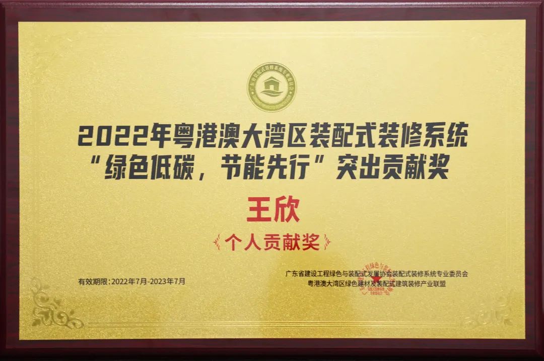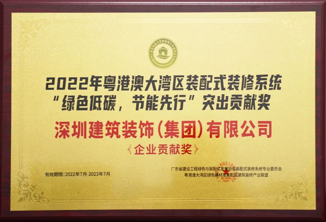 ▲深裝集團(tuán)榮獲2022年粵港澳大灣區(qū)裝配式裝修系統(tǒng)“綠色低碳,節(jié)能先行”企業(yè)貢獻(xiàn)獎(jiǎng)(右一)