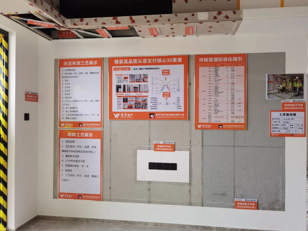 本次觀摩主要展示地下室材料集中分類堆放管理及材料集中加工區、安全文明施工管理及工人進場安全教育和交底展示區、施工工藝樣板工序步驟展示區、成品保護及交付樣板房展示區。