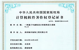 近日,繼獲得兩項國家實用新型專利后,深圳海外裝飾工程有限公司(以下稱“海外裝飾”)工藝工法建設工作再獲佳績,榮獲五項計算機軟件著作權 :“一種基于VR虛擬設計的裝飾設計系統V1.0”、“一種基于計算機開發的智能裝飾設計系統V1.0”、