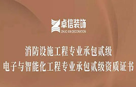 卓信裝飾:新增消防設施工程專業承包貳級和電子與智能化工程專業承包貳級資質