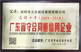 大眾建設(shè):連續(xù)十年榮獲廣東省“守合同重信用”企業(yè)