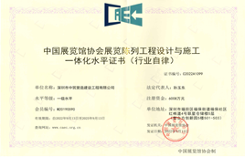 近日,深圳市中筑營造建設工程有限公司順利通過中國展覽館協會的資質等級復評,榮獲一級“中國展覽館協會展覽工程企業水平證書”和“中國展覽館協會展覽陳列工程設計與施工一體化水平證書”。
