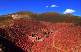 色達喇榮五明佛學院位于四川省甘孜藏族自治州色達縣境縣城東南方約20公里處,海拔4000米以上,是世界上最大的藏傳佛學院,常年居住著四萬多名修行求學的喇嘛和漢藏僧尼。佛學院的僧眾圖書館由萬德建設集團建造,該項目是迄今為止萬德建造的海拔最高的工程項目。