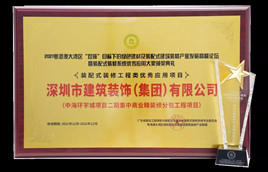 近日,2021粵港澳大灣區“雙碳”目標下的綠色建材及裝配式建筑裝修產業發展高峰論壇暨裝配式裝修系統優秀應用大獎頒獎典禮在廣州隆重舉行。深裝集團承建的中海環宇城項目榮獲“裝配式裝修工程類優秀應用項目”。