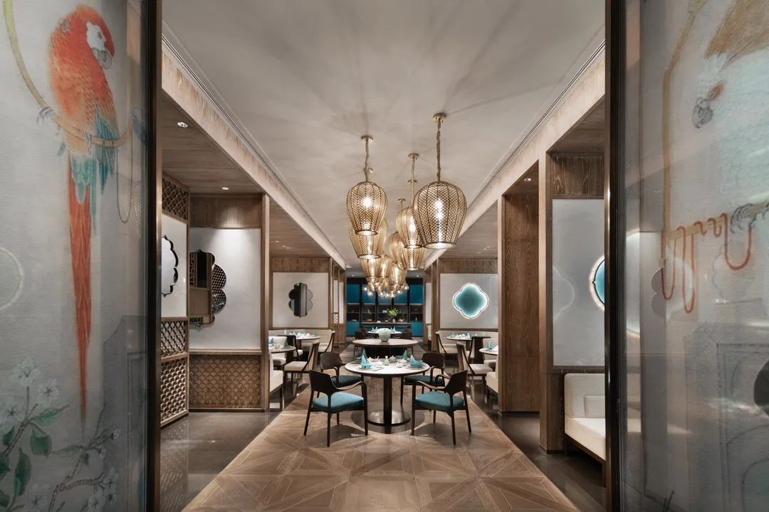 如果說大堂是視覺的統治,是高亢的起首樂章,那中餐廳-彩豐樓則是集視覺、觸覺、味覺、嗅覺、聽覺的多重復調,是黃昏下的耳語,庇護著想象與回憶。