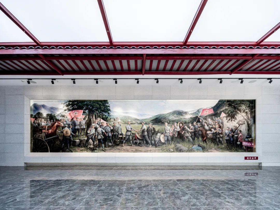 序幕廳以粵贛湘邊縱隊與南下野戰軍會師的創意油畫作為主背景,展現兩支部隊歡呼勝利會師的喜悅和熱烈場面。