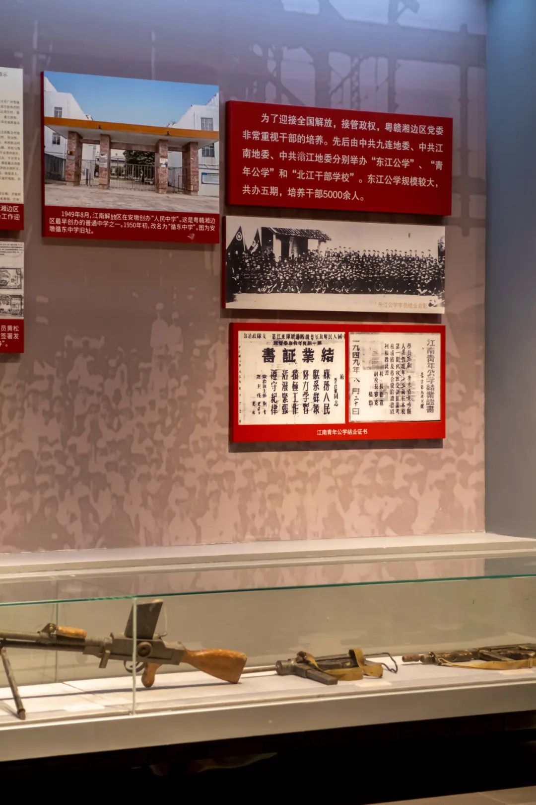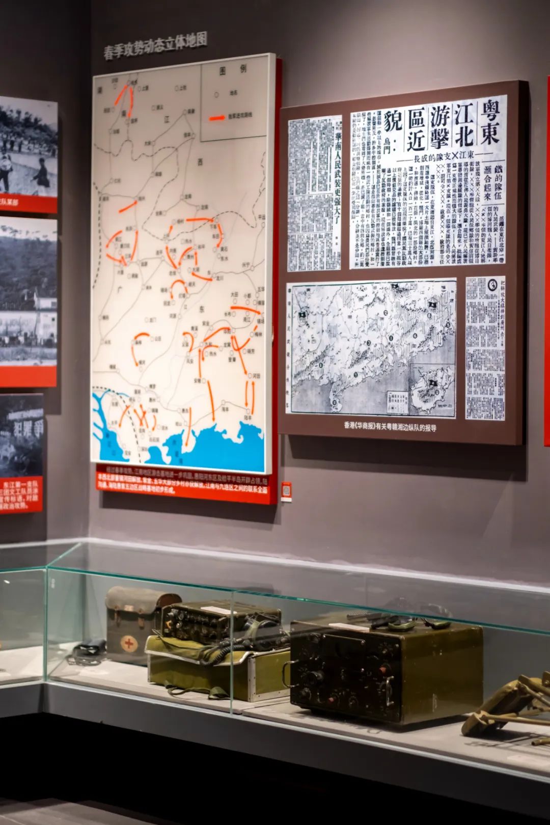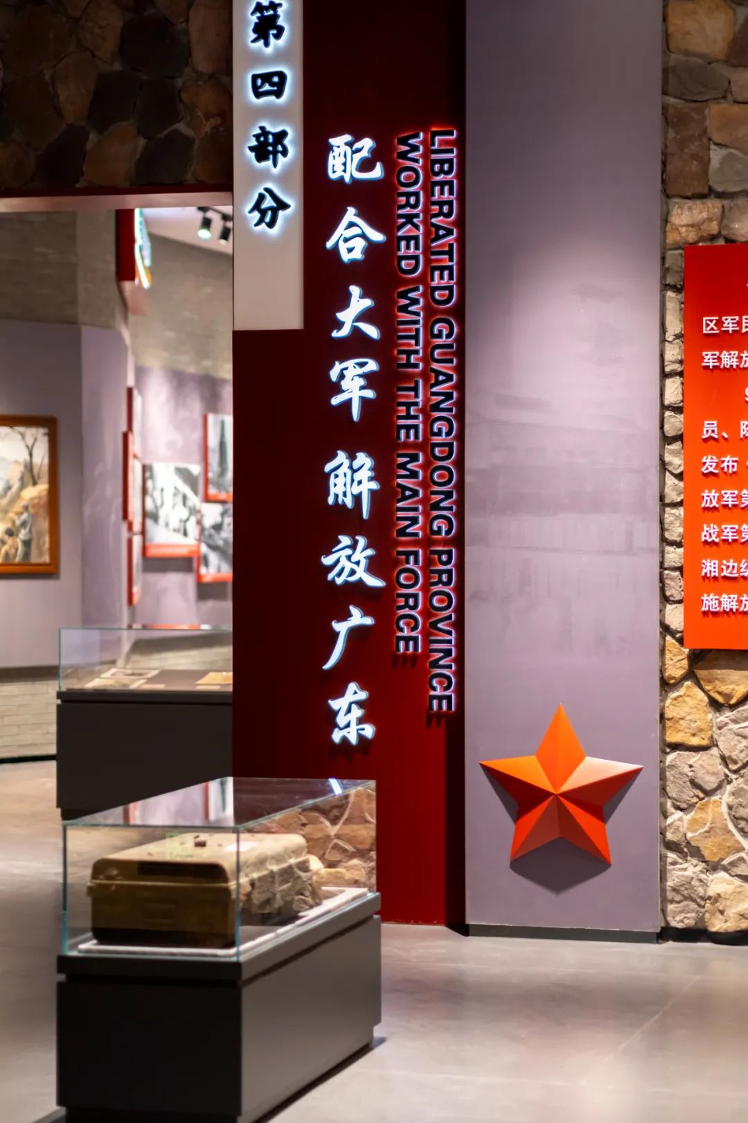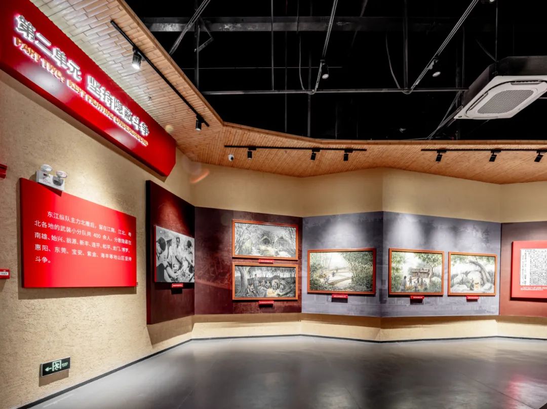 展區結合圖文版面展示粵贛湘邊縱隊配合南下大軍解放廣東的豐功偉績;通過油畫再現迎軍支前慶祝解放等重大歷史場景。