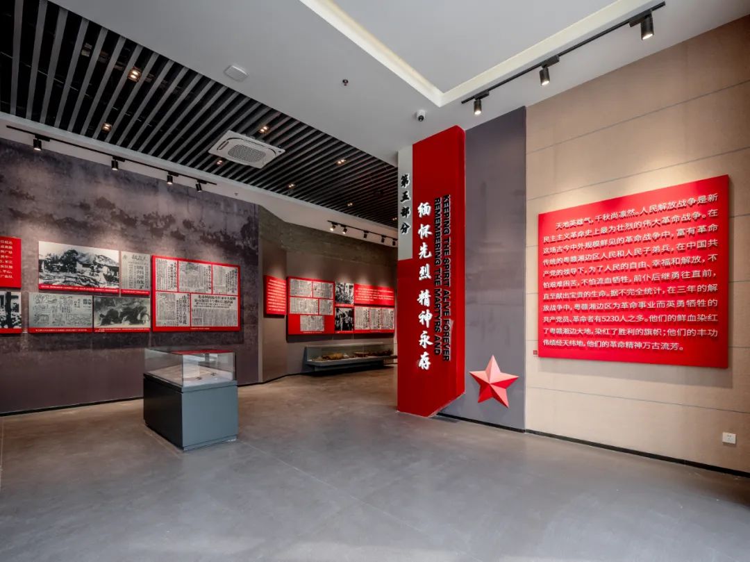 粵贛湘邊縱隊歷史展覽館分為“序幕廳”、“隱蔽待機、重建武裝”、“集結主力,反擊清剿”、“戰略反攻,鞏固基地”、“配合大軍、解放廣東”、“緬懷先烈、精神永存”、“結束語”等幾個部分組成。維業股份采用更新的設計手段,更專的展陳配套和更全的功能服務,讓觀眾沉浸于粵贛湘邊的歲月崢嶸,打造新時期紅色革命歷史展館新典范。