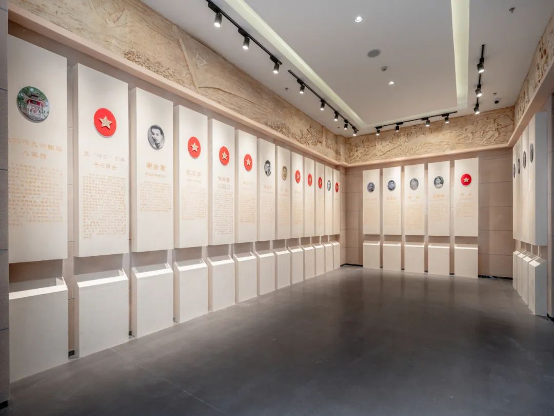 此部分營造莊嚴肅穆的環境氛圍,提供烈士后人及參觀群眾瞻仰獻花組織教育緬懷的平臺。著名英烈簡介字體采用立體字體,字體顏色采用金色,并通過多媒體展示史學工作者有關粵贛湘邊縱隊歷史研究的史料和論著、《粵贛湘邊縱隊》紀錄片。