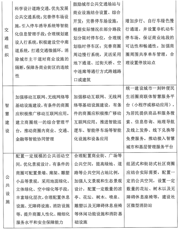 此外,征求意見稿還指出,要基于城市現(xiàn)狀和發(fā)展需求,引入新理念、新技術、新業(yè)態(tài)、新模式,推動城市商圈升級改造,促進商圈差異化發(fā)展,形成不同層級商圈功能和業(yè)態(tài)互補的發(fā)展格局。