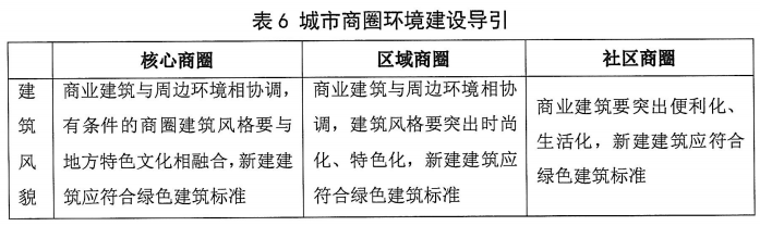 在環(huán)境建設方面,征求意見稿就建筑風貌、交通組織、智慧建設以及公共設施方面也提出了明確的要求。其中,在建筑風貌方面,明確城市商圈建筑風格應體現(xiàn)城市定位和地域文化特色。新建、改建或擴建的商業(yè)建筑,其高度、建筑密度、容積率等規(guī)定性指標應符合城市設計、片區(qū)詳細規(guī)劃的要求,建筑立面、材料、色彩、功能等引導性指標應與整個商圈風貌和周邊環(huán)境相協(xié)調(diào),且不得影響和破壞文物等歷史文化遺產(chǎn)及其環(huán)境安全。