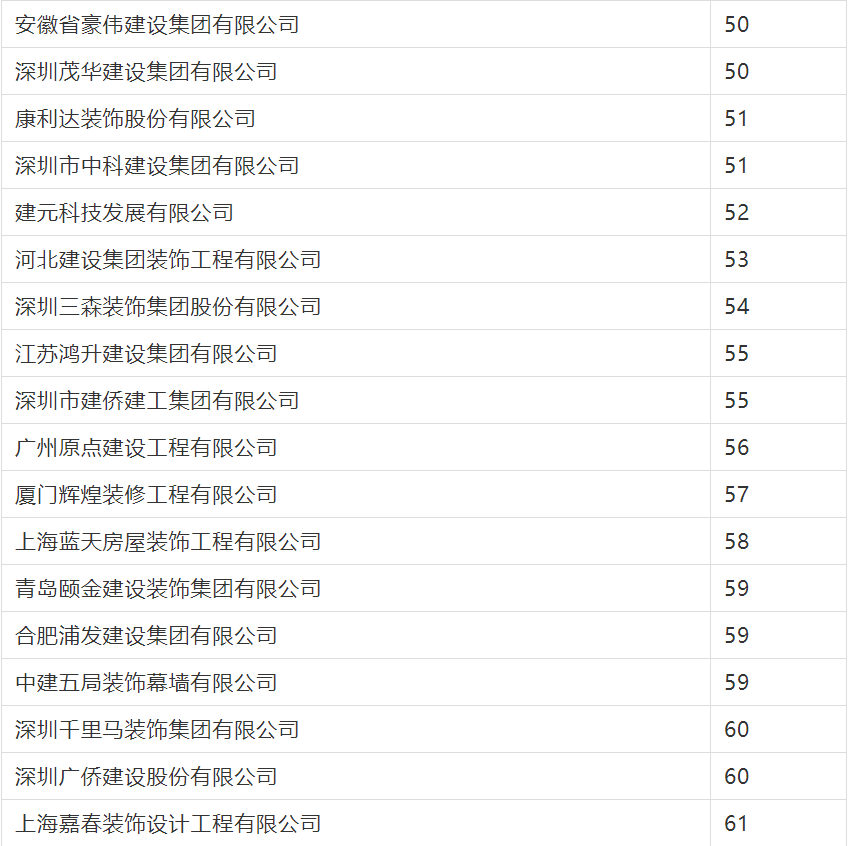 2020年度行業綜合數據統計分為裝飾、幕墻、設計三類,現將2020年度建筑裝飾行業數據統計結果名單予以公告。