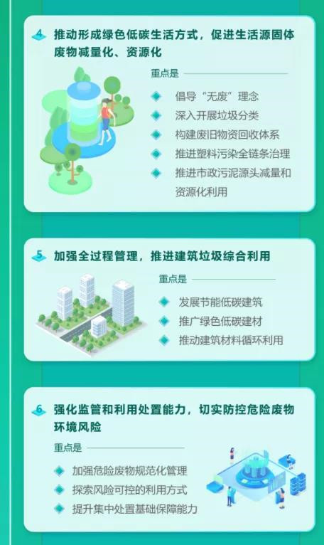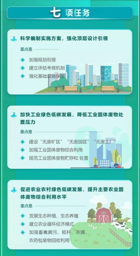 《方案》還圍繞固體廢物污染防治的重點領域和關鍵環節,主要明確了多個主要任務。