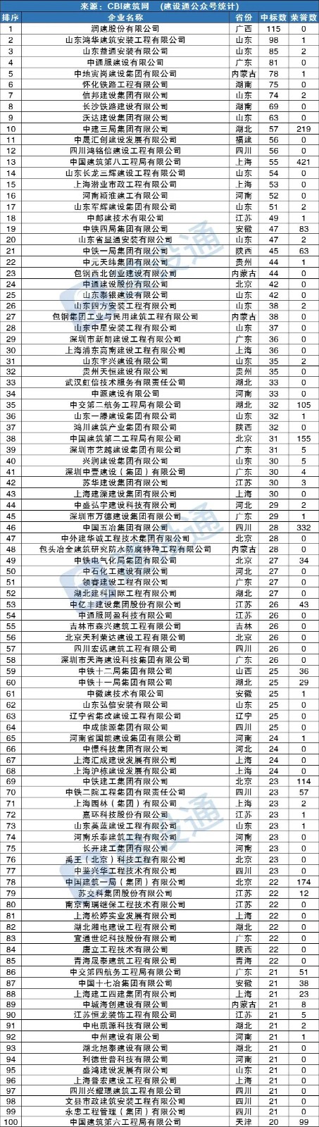 PS:本次數(shù)據(jù)統(tǒng)計(jì)來源于全國(guó)各省市建筑交易中心類網(wǎng)站所發(fā)布的中標(biāo)通知書,信息來源真實(shí)、有效。但由于少部分建筑交易中心未被發(fā)現(xiàn),或少量工程項(xiàng)目要求聯(lián)合體投標(biāo)被重復(fù)統(tǒng)計(jì),可能導(dǎo)致本次統(tǒng)計(jì)數(shù)據(jù)出現(xiàn)一定誤差。