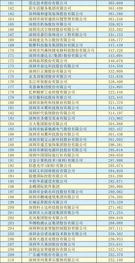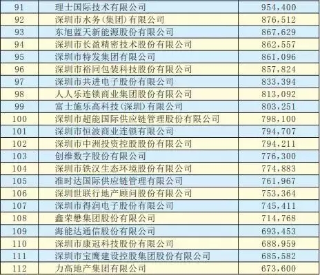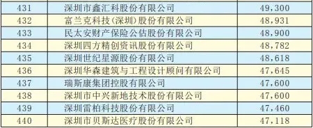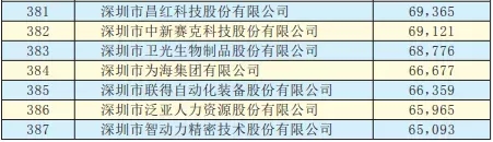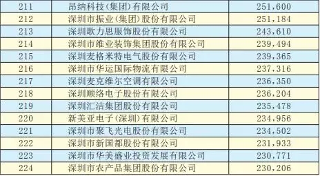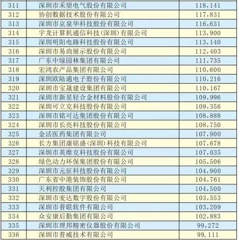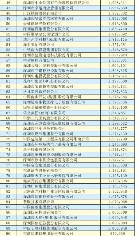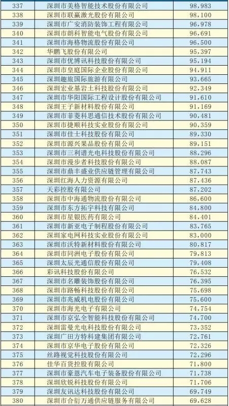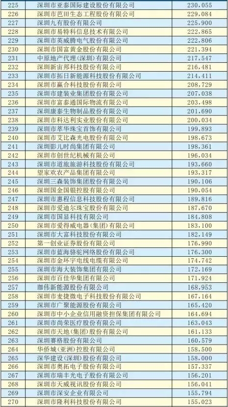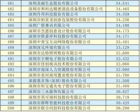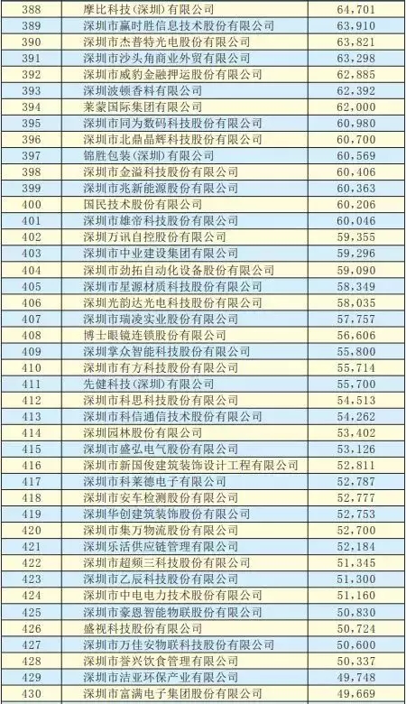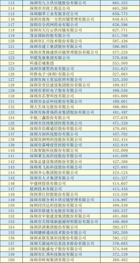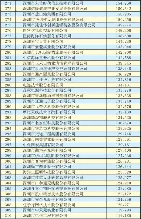 2019深圳500強企業名單