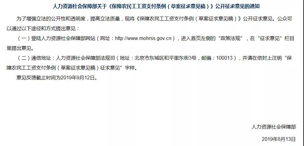 《2019年政府工作報告》明確要求:“要根治農民工欠薪問題,抓緊制定專門行政法規,確保付出辛苦和汗水的農民工按時拿到應有的報酬。”據此,征求意見稿第二條規定:“保障農民工工資支付,適用本條例。保障其他勞動者工資支付,參照本條例執行,但工程建設領域特別保障措施除外。”第三條規定:“農民工提供勞動后有權依法按時足額獲得工資報酬。任何單位、組織或者個人不得無故拖欠或者克扣。”