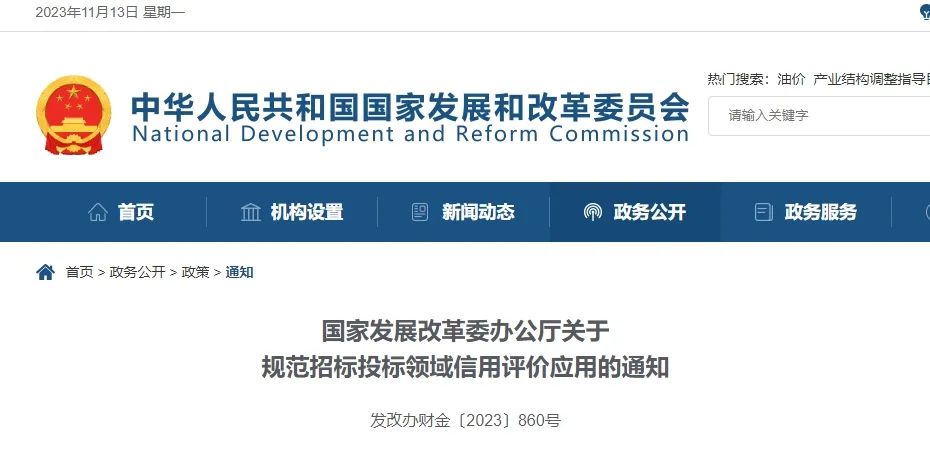 國家發(fā)改委:不得以信用評價評分等方式變相設立招投標交易壁壘
