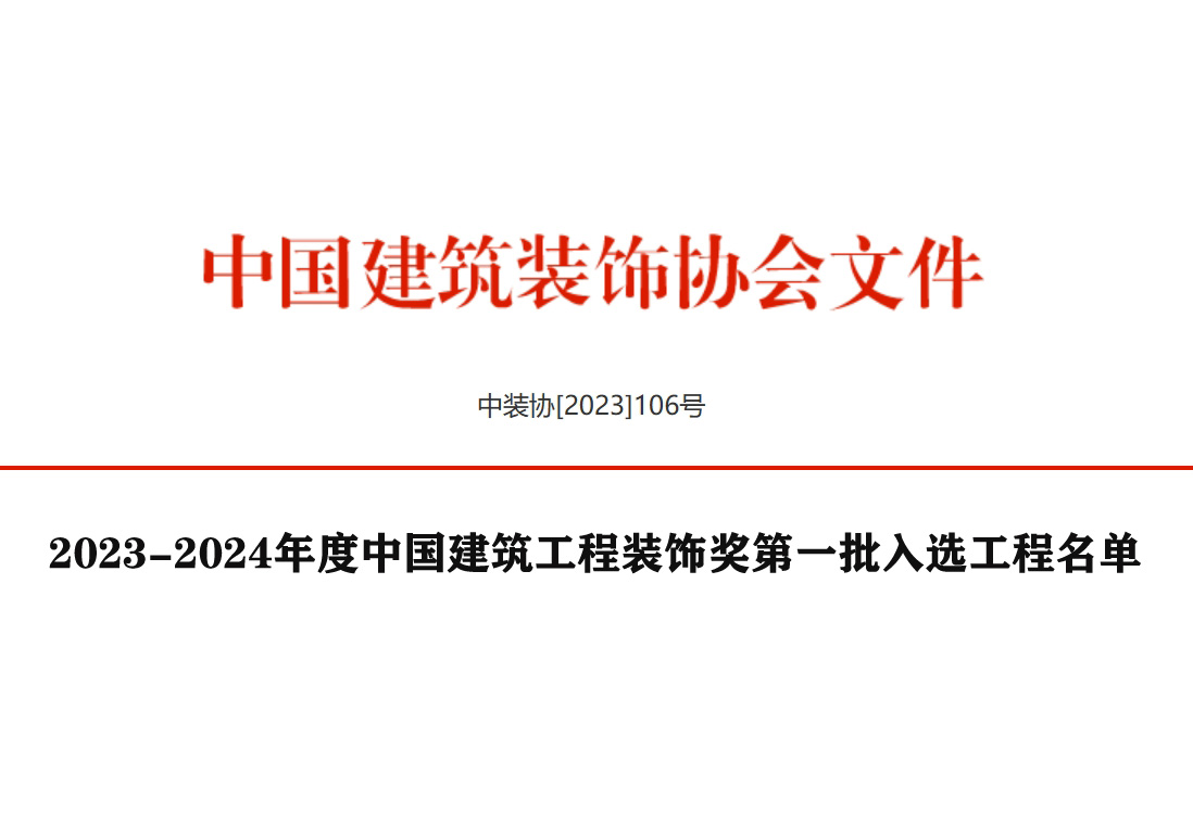 經(jīng)專家評審會審定,中國建筑裝飾協(xié)會核準,現(xiàn)將2023-2024年度中國建筑工程裝飾獎第一批入選工程名單(見附件)予以公告。