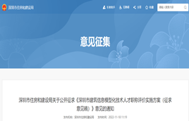 為加快推進深圳市建筑信息模型(BIM)深化應用,11月18日,深圳市住建局發布關于公開征求《深圳市建筑信息模型化技術人才職稱評價實施方案(征求意見稿)》意見的通知。
