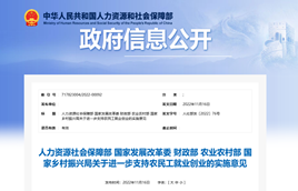 近日,人力資源社會保障部、國家發展改革委、財政部、農業農村部、國家鄉村振興局聯合發布《關于進一步支持農民工就業創業的實施意見》。